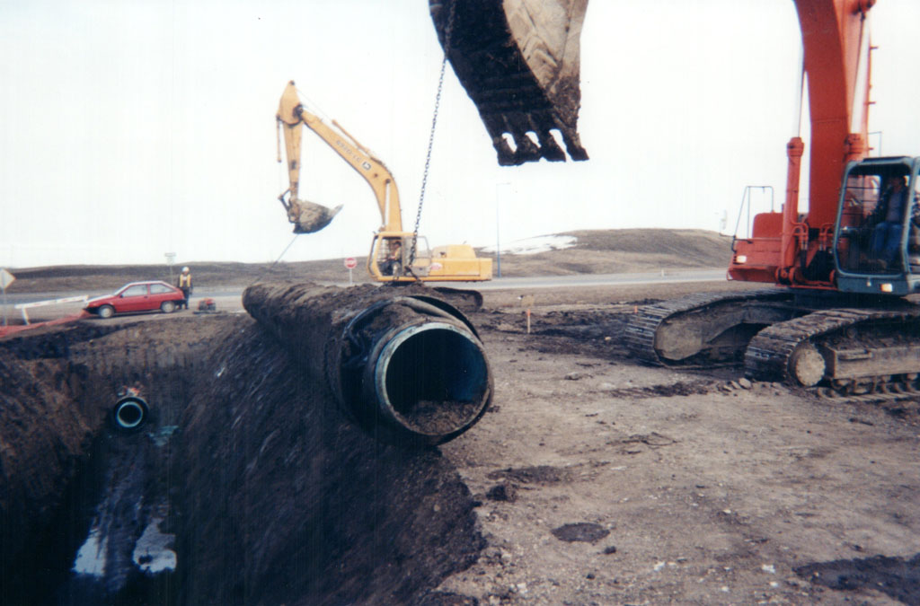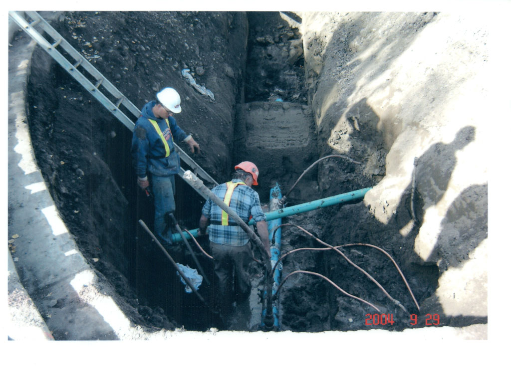 Special pipe gaskets had to be used through an area of contaminated soil - Lafarge was a general contractor. N.S. Pawliuk & Sons working on a Hot Tap connection.