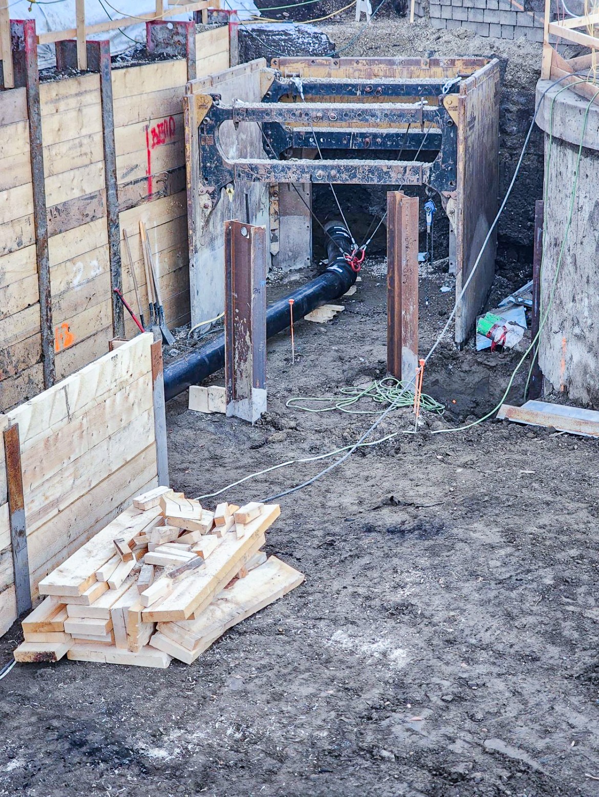 As part of EPCOR’s Flood Mitigation Outfall Control Gates program, extensive storm works were completed at both the Rossdale and E.L. Smith Water Treatment Plants to support new flow-control infrastructure designed to reduce backflow risk during extreme flood events. Our role focused on delivering the underground systems required to enable slide gate installation across multiple waste streams within live, operating treatment facilities.The scope spanned numerous work packages at Rossdale and E.L. Smith, work included deep excavations via Tunnel Plate liners and Slide rails systems, manhole construction, with additional temporary works and groundwater management to support construction in challenging subsurface conditions. Each location requires tailored excavation, shoring, tie-ins, and restoration-ready backfill solutions.Across both sites, the underground scope required sequencing dozens of individual work fronts, responding to unforeseen utility conflicts, and executing additional field-directed work such as sanitary repairs, coupling upgrades, deep dewatering, and localized realignments as conditions were uncovered. All work was coordinated around strict EPCOR operational constraints and shutdown windows, emphasizing constructability, safety, and schedule reliability in high-risk, high-consequence environments.This project demonstrates the ability to deliver complex underground infrastructure across multiple treatment facilities. The work required adapting to evolving scope and coordinating with active plant operations to support flood-mitigation systems, while maintaining close coordination with PCL Construction.Project Metrics at a Glance